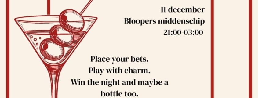 Het is bijna zover 11 december is het gala. Trek je mooiste outfit uit de kast want ‘Casino Royale🃏’ is de sleutel tot een exclusieve nacht. Vanaf 21:00 zijn jullie meer dan welkom om via de rode loper, onder het genot van een welkomstdrankje, gratis het middenschip van Bloopers te betreden.✨